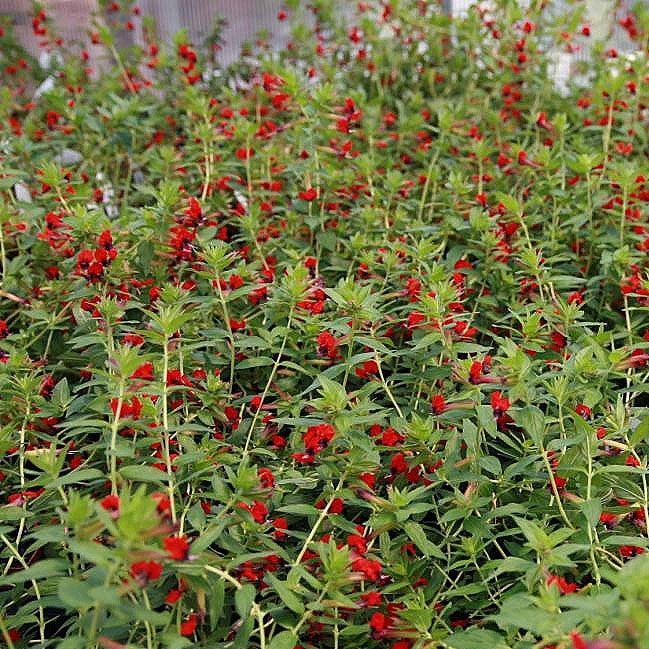 Cigar Plant is a tender perennial grown as an annual with a neat rounded habit and upright whorls of green foliage. The tiny but showy cylindrical flowers resembling cigars are deep red with violet tips and bloom along the stems from spring through fall. When outside these flowers are highly attractive to butterflies and hummingbirds. Flowers best moist, well drained soils. Somewhat drought tolerant once established and makes for an easy-care. houseplant