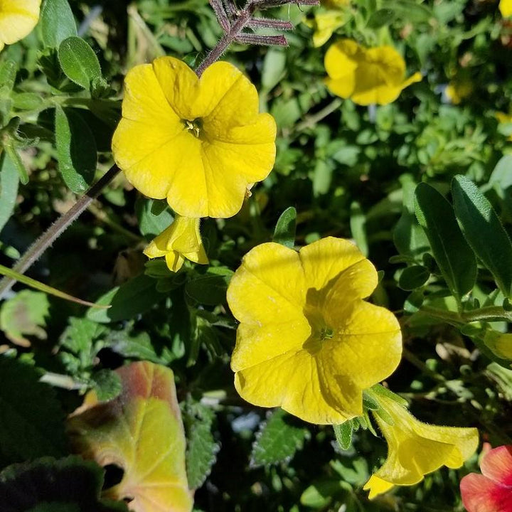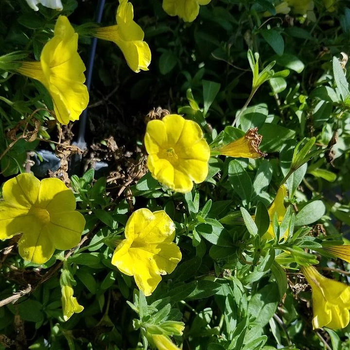 Aloha Kona Yellow Calibrachoa is a compact semi-trailing herbaceous annual with small dark green foliage. Abundant blooms of bright yellow flowers last from spring until the first frost. Flowers best with full sun and moist, well-drained soils. Tolerates drought and light shade.