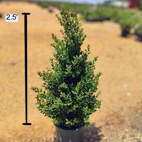 Arrow Point Japanese Holly is a small evergreen shrub with a pyramidal habit and tidy clear green foliage.  The spineless foliage is soft to the touch and emerges with a gently flush of burgundy.   Best planted moist, slightly acidic well-drained soils.  Arrow Point is resistant to spider mites and can be easily maintained at a 5'x3' stature or allowed to reach full size.