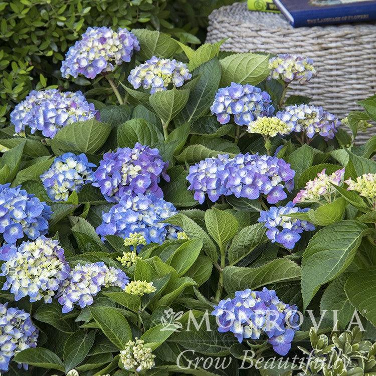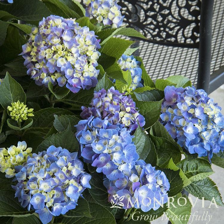 Monrovia® Newport Hydrangea is a compact reblooming deciduous shrub with a tidy mounded form and serrated dark green leaves. Its abundant large-flowered mophead panicles bloom throughout summer with color that depends on the soil PH - blue in acidic soils, purple in more neutral, and pink tones in alkaline soils- attracting butterflies and pollinators. Best bloom in partial sun and rich, moist well-drained soils. The Seaside Serenade series is a Monrovia exclusive that has longer lasting blooms and extra sturdy stems, and resists sun scorching.