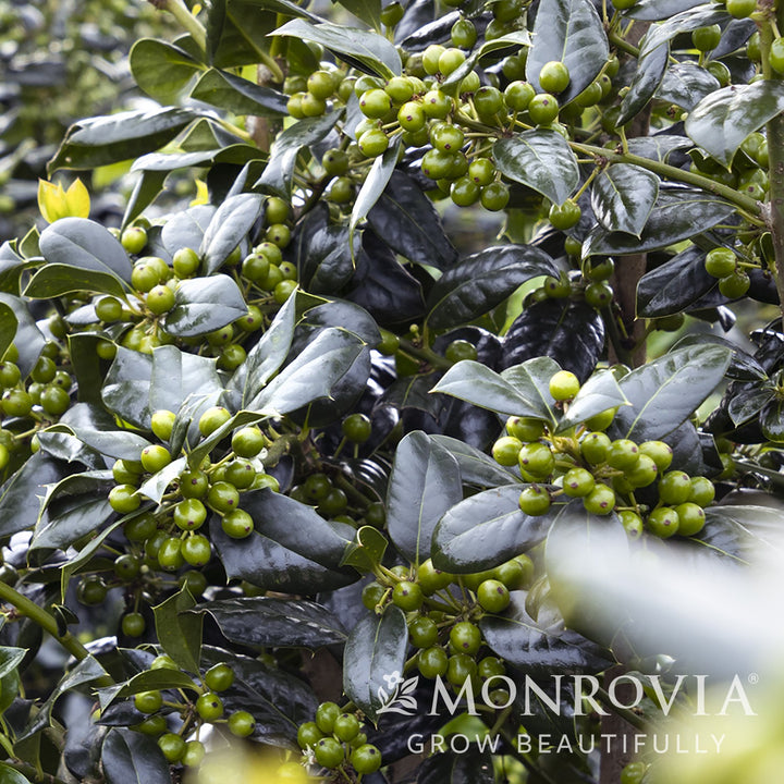 Monrovia® Nellie R. Stevens Holly is a popular evergreen holly cultivar that is widely used in landscaping. It is a hybrid between the English holly (Ilex aquifolium) and the Chinese holly (Ilex cornuta). This holly variety is known for its dense, pyramidal growth habit and its ability to reach a height of 15 to 25 feet (4.5 to 7.5 meters) with a spread of 10 to 15 feet (3 to 4.5 meters).