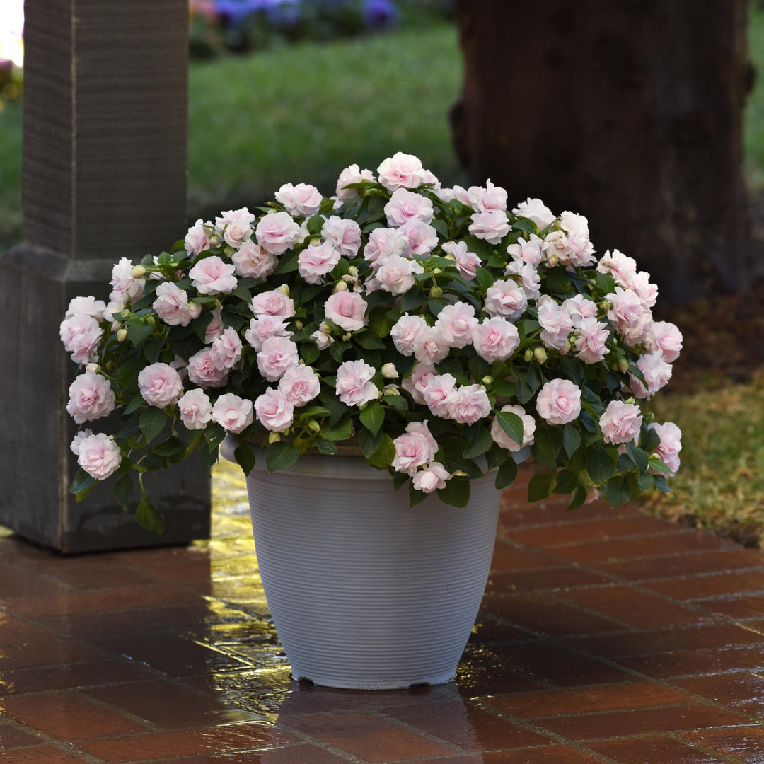 Impatiens walleriana 'Balglimapp' ~ Glimmer™ Appleblossom Double Impatiens-ServeScape