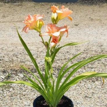 Siloam Double Classic Daylily is a long-blooming perennial with grass-like deep green foliage. The sweetly fragrant flowers are fully double with rippled peachy petals and a yellow halo blooms in early summer and may rebloom again in late summer attracting butterflies and pollinators. Best bloom in full sun and moist well-drained soils. Drought and salt tolerant once established.