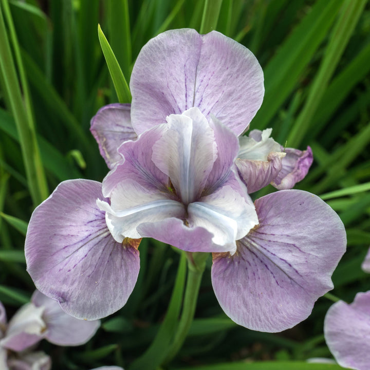 Lavender Bounty Siberian Iris is a deciduous perennial with a clumping habit and long sword-like blue-green foliage that fans upwards. The rigid sturdy central stalks are topped by beardless lavender flowers with pale lavender standards in early summer, attracting bees. Flowers best in full sun and rich, slightly acidic, moist well-drained soils.