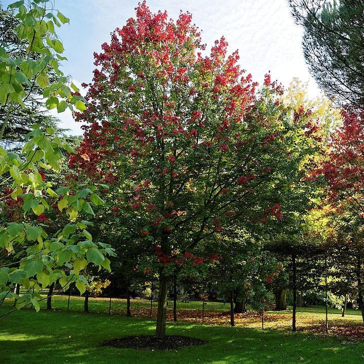Foliage: The leaves are medium to dark green in the summer, turning a vibrant red to reddish-purple in the fall, hence the name "October Glory".