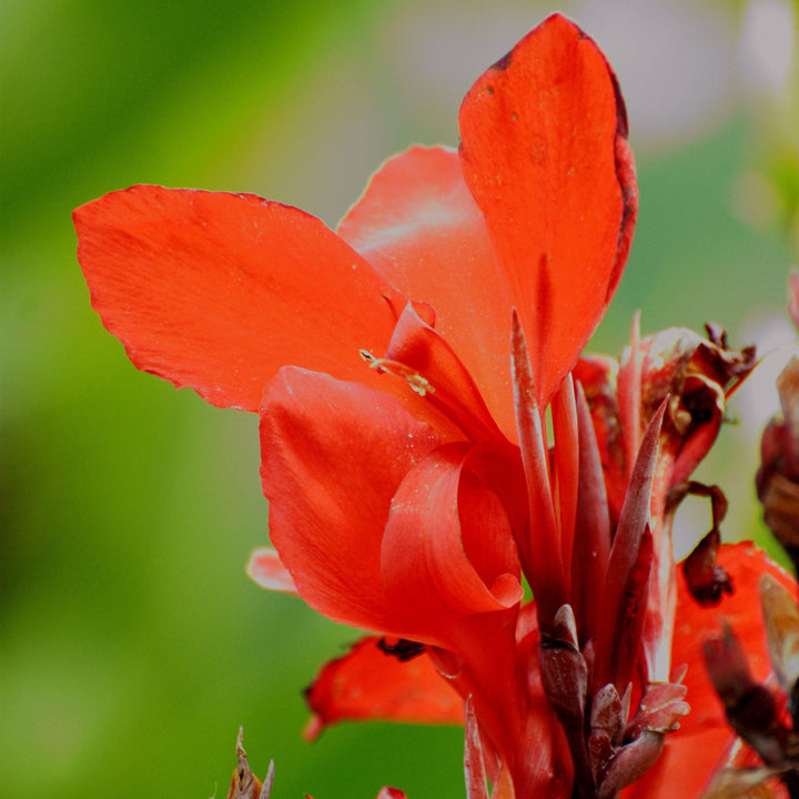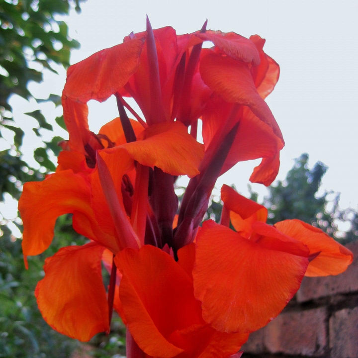 Black Knight Canna Lily is a fast-growing herbaceous perennial with a basal-clumping habit and dramatically large bronzed foliage. The orange-red to red flowers bloom on tall stalks throughout summer until frost which attracts bees and butterflies. Blooms best in full sun and rich, moist well-drained soils. Deer Resistant.