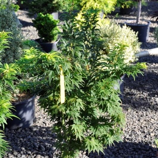 The Mikawa Yatsubusa Japanese Maple is a beautiful and popular cultivar. It is known for its compact size and dense, bushy growth habit. The leaves of the Mikawa Yatsubusa are typically small and deeply lobed, with a vibrant green color that turns a stunning red in the fall. This variety is perfect for small gardens or containers, as it stays relatively small and compact. This dwarf selection only reaches 3-4ft in 10 years, growing at a mere 4" a year until maturity.