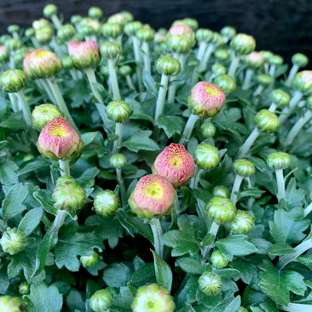 Fall Daisy Mum is a late season perennial with a low-mounding habit and dark green foliage.  The masses of large flowers come in various colors and bloom starting mid fall and continues through frost.  Prefers full sun and moist well-drained soil, but protection from afternoon sun in Southern climates.  Heat and drought tolerant.