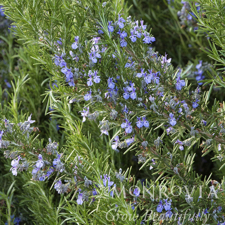 Monrovia® Tuscan Blue Rosemary is a small upright aromatic shrub commonly used for cooking.  The evergreen needle-like foliage is covered with clusters of tiny clear blue flowers in spring through summer.  Best grown in full sun and slightly acidic well-drained soils.
