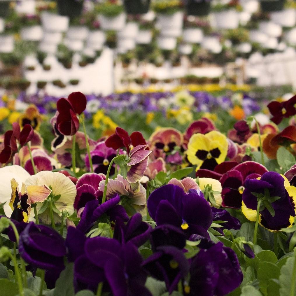 Delta Blotch Mix Pansy is a uniform long-blooming perennial that is tightly branched and has dark green leaves.  The fragrant flowers come in shades of purple, red, yellow, and white with dark faces bloom from fall to spring.  Prefers full sun and moist well-drained soils.