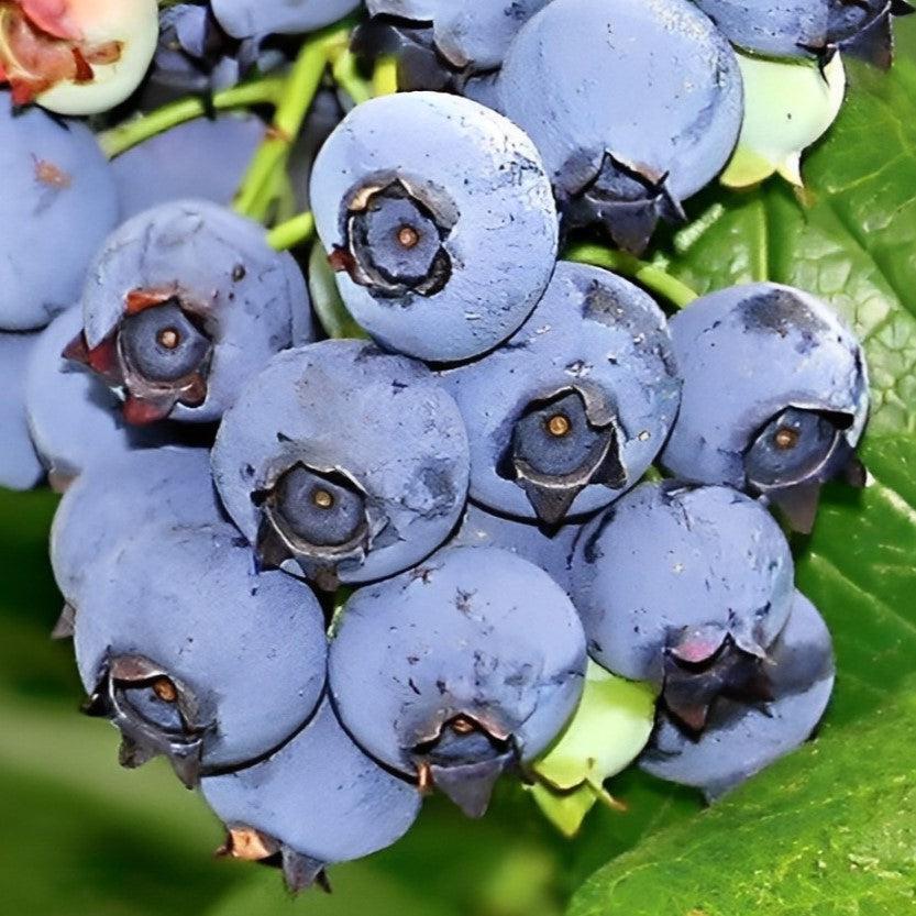 Toro Blueberry is a native deciduous shrub that has an upright spreading habit and heavy production of huge juicy blue berries that ripen in mid season. Its elliptical green foliage turns fiery red in fall. The loose pendulous clusters of white spring flowers give way to the signature berries. Grows best with full sun and rich, moist acidic well-drained soils. While self-fertile, cross-pollination will produce a better crop.