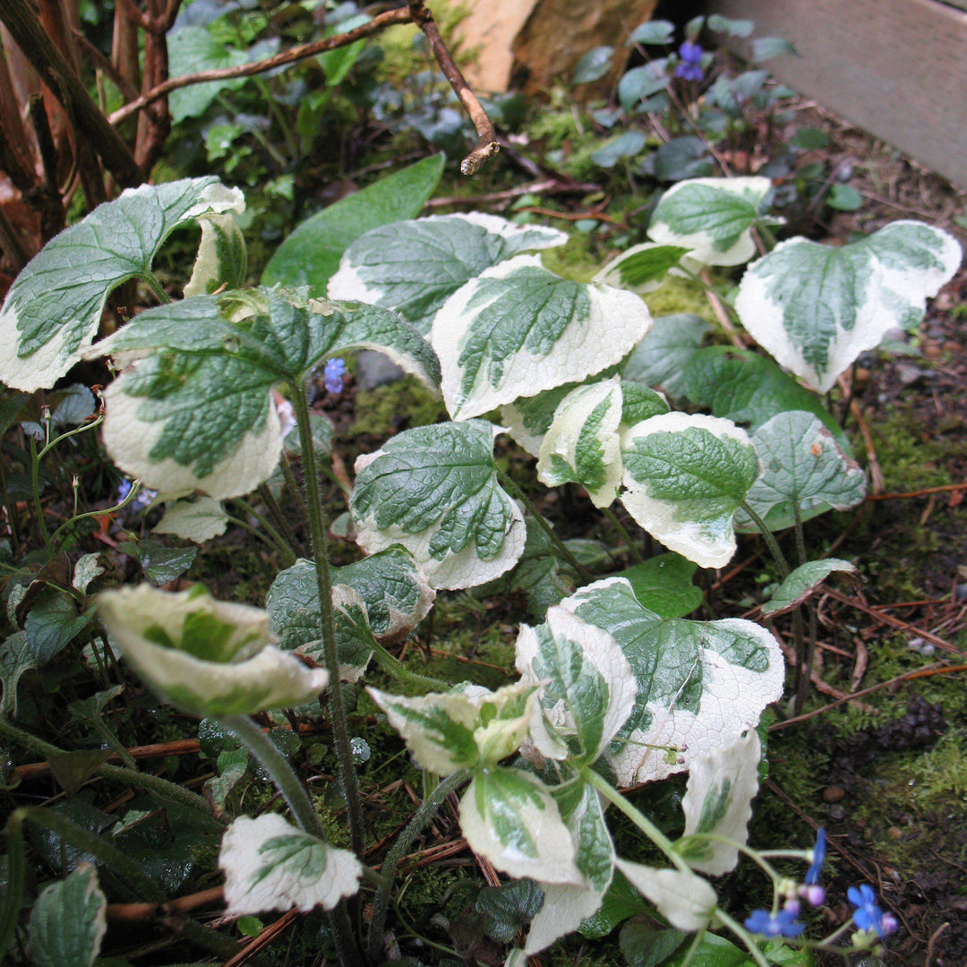 IMAGES: cultivar413, 190608 191 Kensington Garden Tour (2) Sonya, Brunnera macrophylla 'Variegata', (3) Tony Alter, Variegated Hydrangea (Hydrangea macrophylla 'Variegata')