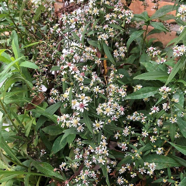 Calico Aster is a native herbaceous perennial with stiff, hairy strap-like foliage. Densely branched clusters of small white to pale lavender flowers with yellow centers that deepen to red centers as it ages bloom on rigid stems in fall. Grows best in full sun and dry to medium well-drained alkaline soils.
