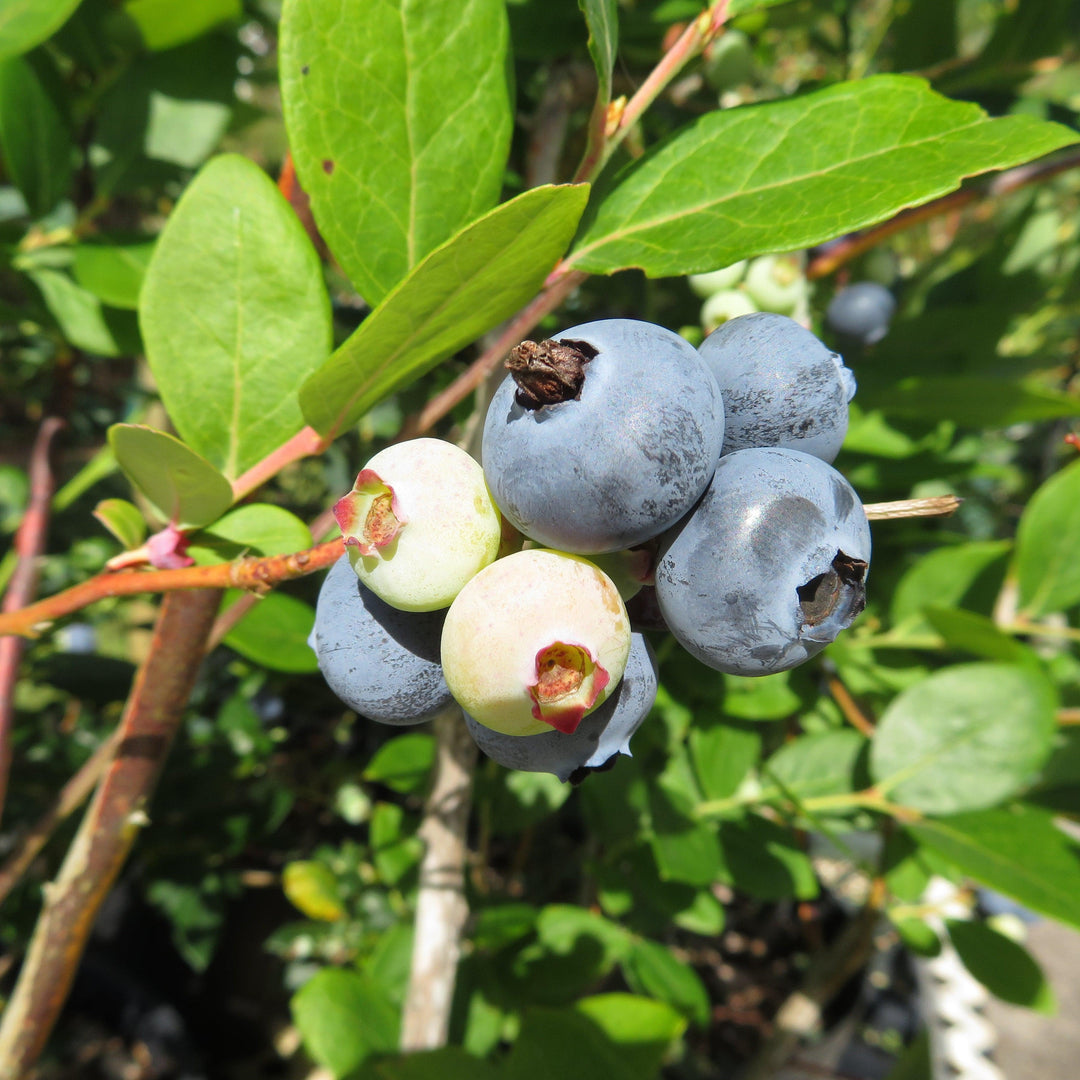 IMAGES: Forest & Kim Starr, Starr-170720-0235-Vaccinium hybrid-CV Sharp Blue immature fruit right now-Hawea Pl Olinda-Maui (36060514360), CC BY 3.0 US, (2) Forest and Kim Starr, starr-190518-6528-Vaccinium_hybrid-fruit-Hawea_Pl_Olinda-Maui