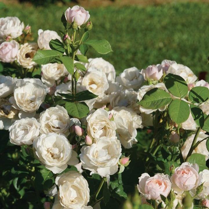 Reminiscent Pink Rose is a vigorous long-blooming deciduous shrub with an upright mounding habit and glossy foliage. Clusters of large, delightfully fragrant and densely petaled double flowers that are soft pink blooms in summer and fall. Best grown in full sun and rich, moist, slightly acidic well-drained soils. Reminiscent Pink is self cleaning and is is disease resistant.