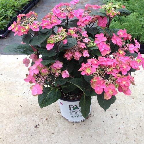 Tuff Stuff Red Hydrangea is a compact hardy deciduous shrub with a tidy habit of upright stems and rich green wilt-resistant leaves. The panicle clusters a deep pink-red regardless of the PH and blooms first on old wood in early summer and the again from late in summer into fall on new wood. Best bloom in partial sun and rich, moist well-drained soils.