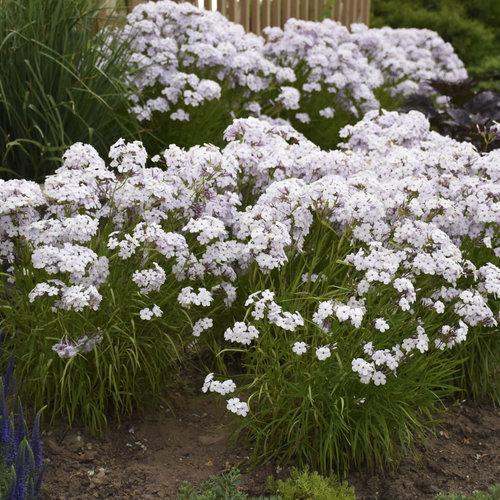 Opening Act Pink-A-Dot Phlox is a vigorous evergreen perennial with upright stems and dark green awl-shaped foliage. Fragrant near-white purple flowers with dark pink star-shaped centers bloom throughout summer attracting butterflies. Best flowering in full sun and rich, moist, well-drained soils. Powdery mildew resistant and drought tolerant.