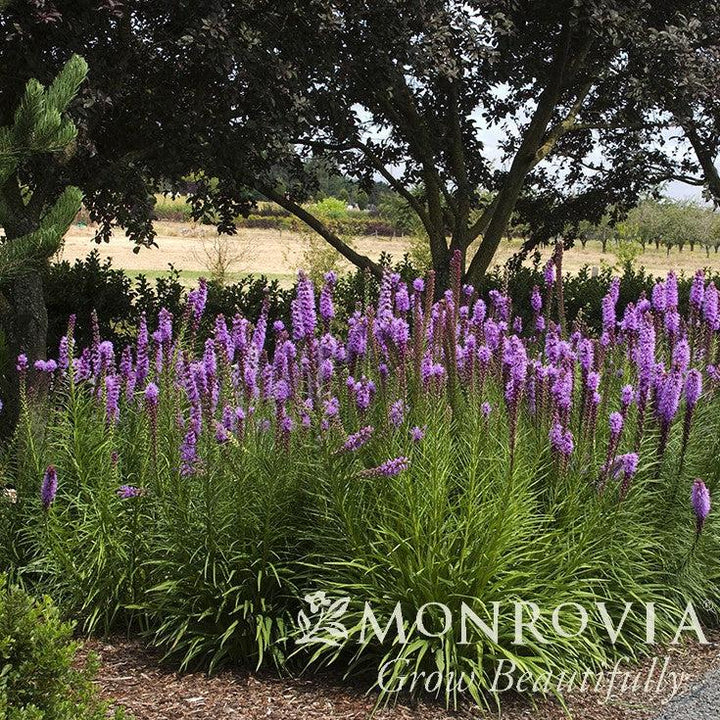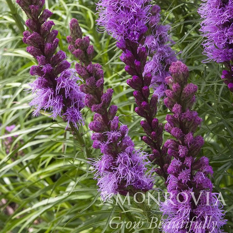 Kobold Blazing Star is a compact upright clumping native perennial with basal tufts of narrow grass-like medium green foliage. Sturdy stalks rise in summer with fluffy lavender purple disk flowers in summer. Grows best in full sun and moist fertile soils. Drought and heat tolerant.