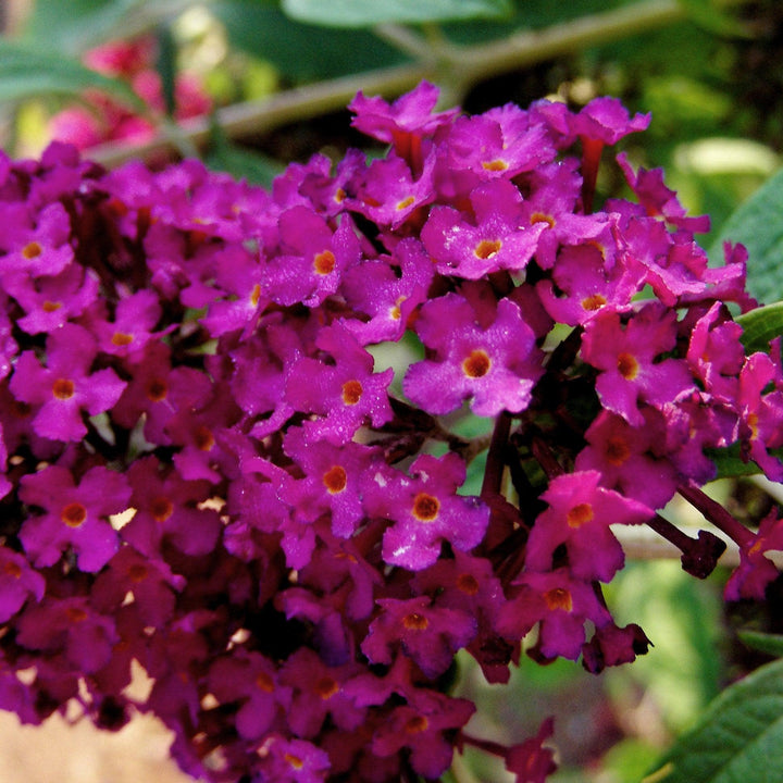 Royal Red Butterfly Bush is a large upright deciduous shrub with dense grey-green foliage and vibrantly colored blooms. The rich magenta purple to purple-red flowers bloom on panicles from midsummer into fall attracting bees and butterflies. Best performance in sunny well-drained areas. Drought tolerant.