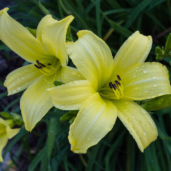 Hyperion Daylily is a re-blooming semi-evergreen perennial with arching grass-like deep green foliage.  The sunny yellow flowers are extremely fragrant and bloom throughout summer.  Best bloom in deep rich well-drained soils.  Drought and salt tolerant once established.