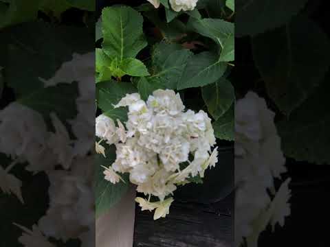 Wedding Gown Hydrangea is a compact double-flowered deciduous shrub rebloomer able to bloom on both old and new wood. Its glossy serrated dark green leaves have no fall color. The double lacecap flowers bloom white regardless of the soil PH, first in spring on old wood then again in summer and fall if deadheaded. These flowers are attractive to butterflies and pollinators. Best bloom in partial sun and rich, moist well-drained soils.