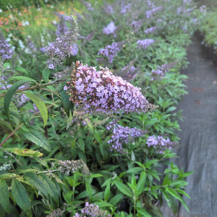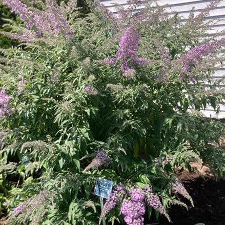 Grand Cascade Butterfly Bush is a fast-growing bushy deciduous shrub with dense feathery grey-green foliage and enormous cascading panicles that can read to a foot in length. These well packed panicles of sweetly fragrant light lavender flowers bloom late in the season, from late summer into fall, attracting bees and butterflies. Best performance in sunny well-drained areas. Good drought and frost tolerance.
