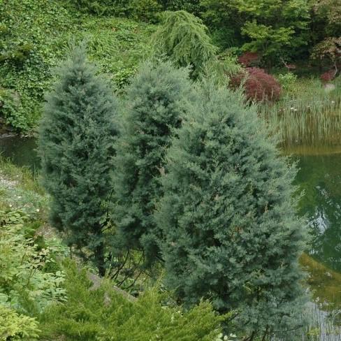 Carolina Sapphire (Cupressus arizonica 'Carolina Sapphire') is a fast-growing evergreen tree with striking silver-blue foliage. It has a pleasant fragrance and can reach heights of up to 40 feet. Carolina Sapphire is often used as a windbreak or privacy screen due to its dense growth habit. It is also drought-tolerant and can thrive in various soil conditions.