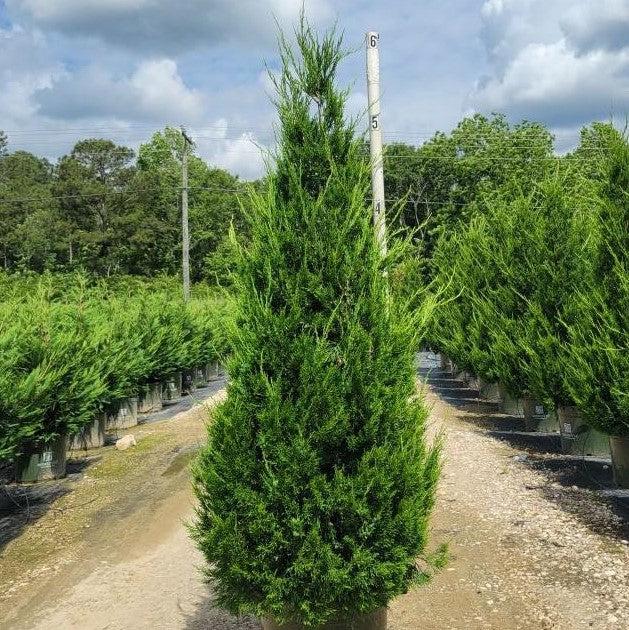 Green Columnar Juniper is a fast-growing upright pyramidal coniferous shrub with tight, dense branching. The spiny aromatic needle-like foliage is bright green. Best planted in full sun and well-drained soils. Drought Tolerant once established.