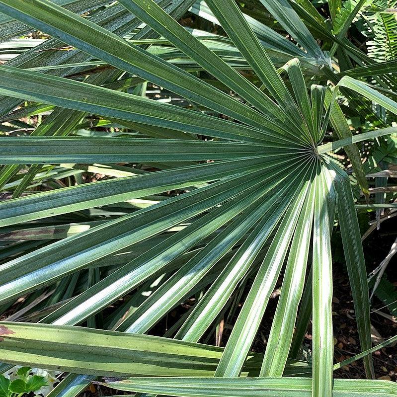 Needle Palm is a dense, near-trunkless native evergreen palm treated as a shrub.   Its narrow and stiff green foliage is deeply divided and arranged like a fan.  The inconspicuous summer flowers are usually by the foliage and are followed by fruits that ripen in fall.  Grows best with full sun in rich and moist well-drained soils.   Drought tolerant once established.  Warning: There are sharp 6in black needle-like spines at the base of the plant.