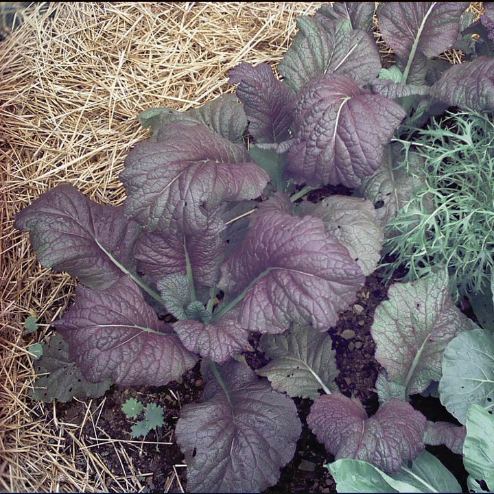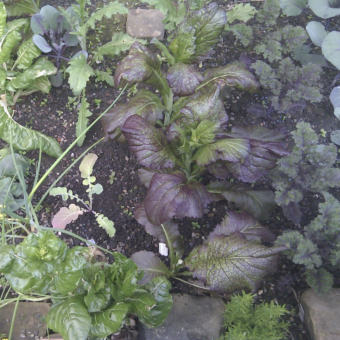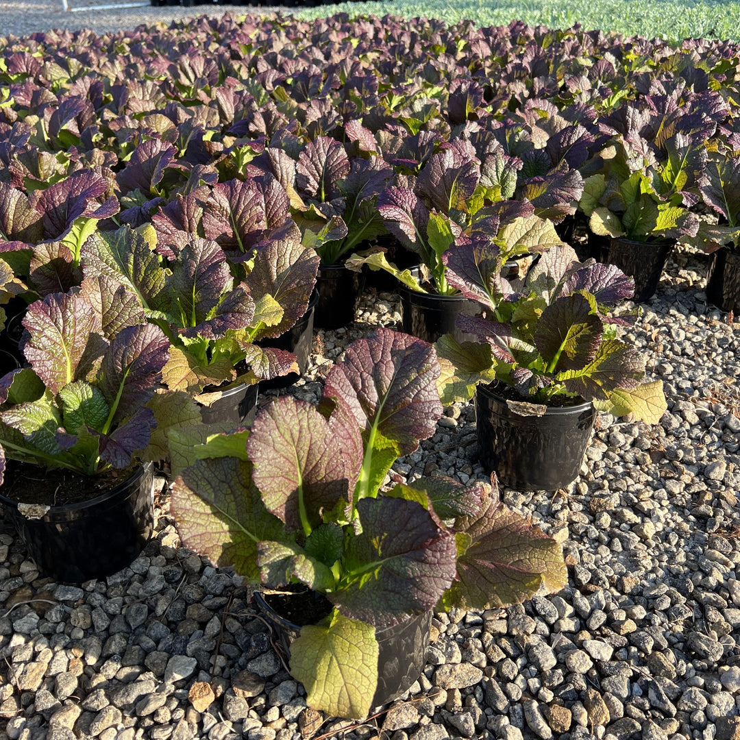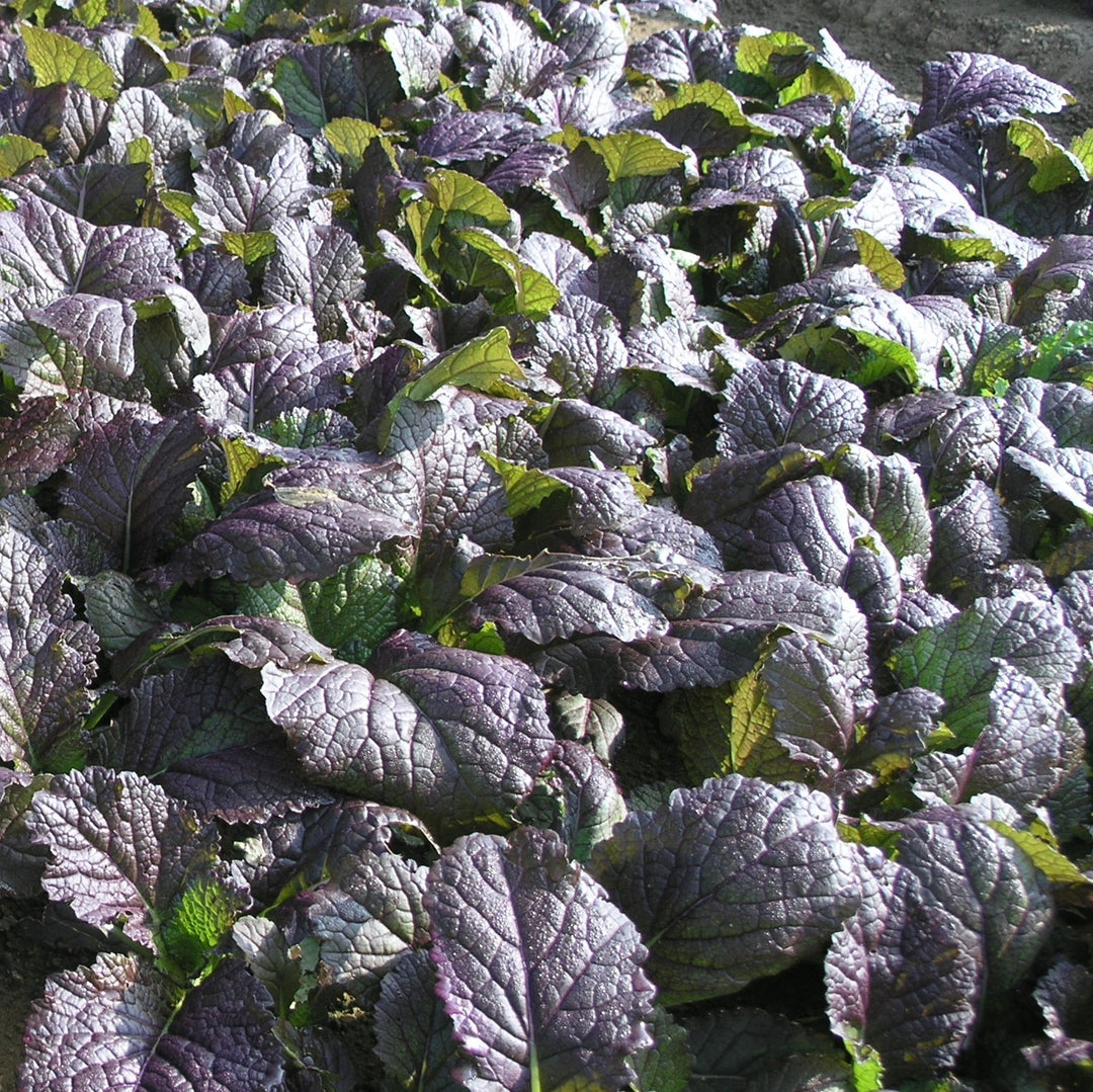 Red Giant Mustard is a fast-growing heirloom annual with edible, showy textured maroon foliage forming a loose head. The thick and tender foliage matures in 20-40 days and the zesty flavor intensifies in hot weather and older foliage, providing hints of horseradish. Best grown in full sun and rich, moist, acidic well-drained soils. Cold tolerant and bolt resistant.