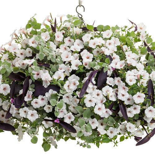 Bubblegum Petunia is a mounding tender herbaceous perennial that is grown as an annual when outside, with small green foliage and non-stop flowering. The fragrant soft pink funnel-shaped flowers bloom from spring until frost. Flowers best in part shade and rich, well-drained soils. Petunias do very well as container and house plants.