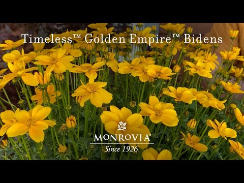 Golden Empire Bidens is a compact, upright herbaceous annual with fine rich green foliage and wiry stems.  Abundant blooms of cheerful yellow flowers bloom throughout spring and into summer attracting bees and butterflies.  Best performance in sunny well-drained areas.  Drought tolerant.