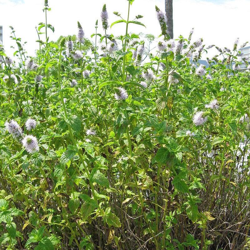 Spearmint is an upright perennial with aromatic textured green leaves grown for culinary purposes or as groundcover. Short terminal flower spikes of tiny pink to white flowers bloom in summer. Grows best in full sun and rich moist well drained soils.