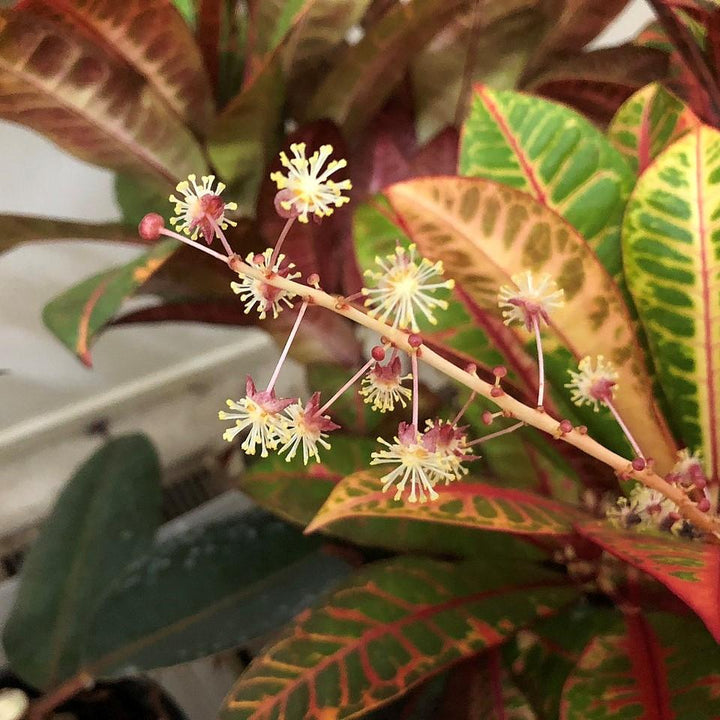 IMAGES: (1) Forest & Kim Starr, Starr-110209-0691-Codiaeum variegatum-leaves-Resort Management Group Nursery Kihei-Maui (25074370835), CC BY 3.0 US, (2) KimonBerlin, Codiaeum variegatum (croton) (9057411539), CC BY-SA 2.0, (3) Photo by Hafiz Issadeen, Croton (Codiaeum variegatum), (4) Lanntaron, A identificar (1), CC BY-SA 3.0, (5) Famartin, 2018-12-16 20 15 18 Male flowers on a Garden Croton grown as a houseplant in the Franklin Farm section of Oak Hill, Fairfax County, Virginia, CC BY-SA 4.0