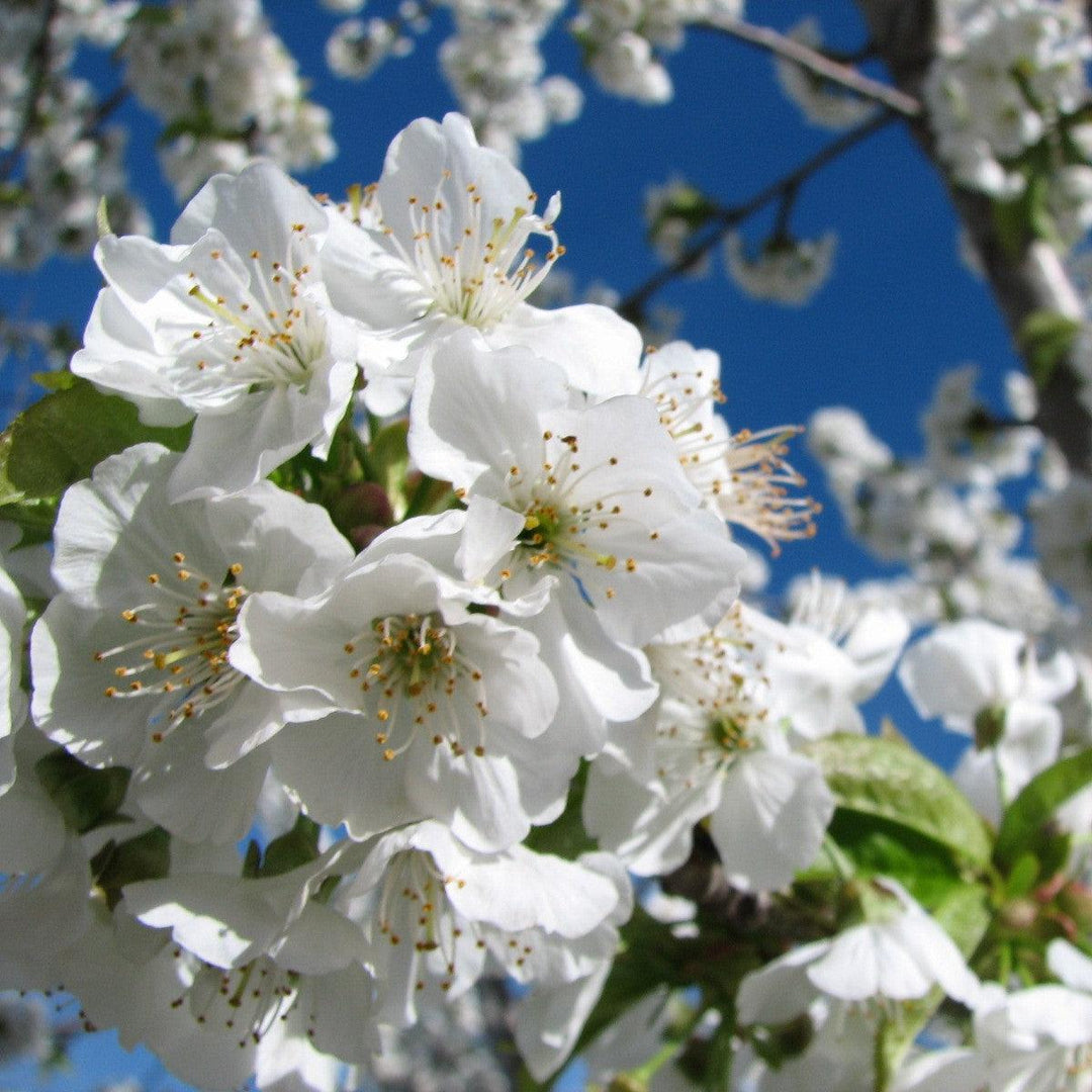 Bing Cherry Tree is a popular sweet cherry cultivar that produces a strong crop of high-quality cherries that are deep red. While its mature size depends on its root graft, it has a rounded crown and bright green foliage. Its white flowers bloom in mid spring, and are followed by the berries that are ready for harvest in summer once old enough to start producing. Grows best in most, well-drained soils that are lightly acidic. Average age to fruit is 3-7 years. Needs a pollinator to set fruit; suggested partners are other sweet cherries such as Rainer, Van, Windsor, and Sam.