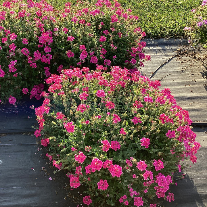 EnduraScape Magenta Verbena is a compact evergreen perennial with a stiff, mounding habit and hairy stems sporting sharply toothed green foliage. The wiry branched stems are lightly leafed and are topped by large clusters of vibrant pink magenta flowers from spring until frost attracting butterflies. Grows best with full sun and well-drained soils. EndurasScape have excellent mildew resistance and heat tolerance.