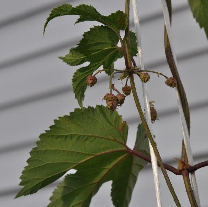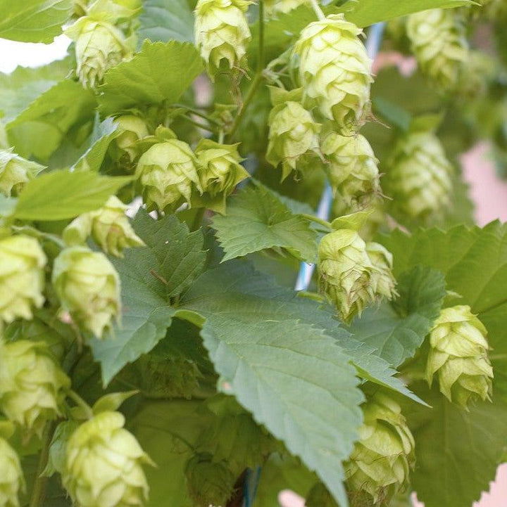 Chinook Hops is a vigorous twining deciduous vine with serrated dark green leaves and hops that are used in beer. The fragrant green female flowers bloom in cone-like structures that mature in late summer to early fall and are followed by aromatic hops. Chinook is a bittering variety that is citrusy with notes of spice and pine. Grows best with rich, moist well-drained soils. Drought tolerant once established. Needs both male and female plants to produce seed. Chinook is resistant to verticillium wilt and downy mildew.