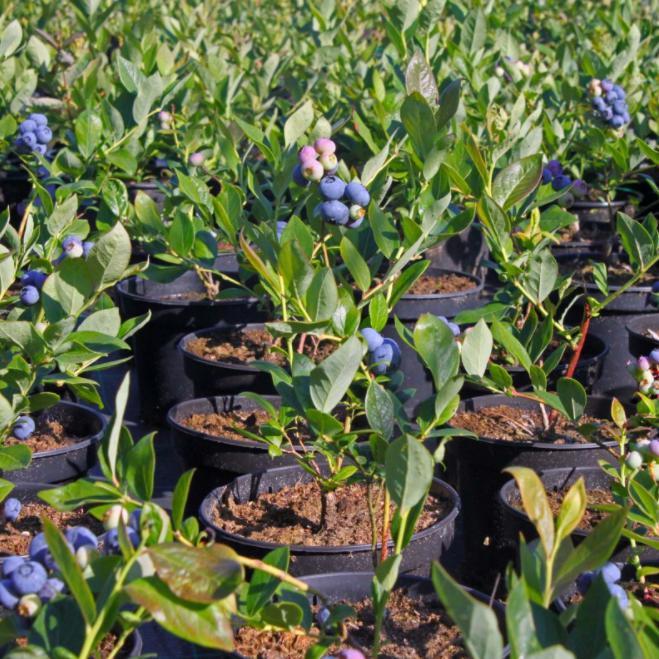 Northsky Blueberry is a dwarf fruit-producing deciduous shrub with large waxy green foliage that turns dark red in fall. Clusters of snowy white flowers bloom in late spring before giving way to the small, richly 'wild' flavored sky blue blueberries that ripen in midsummer. Grows best with full sun and rich, moist acidic well-drained soils. Northsky can produce on average 2 lbs of berries, is self-pollinating.
