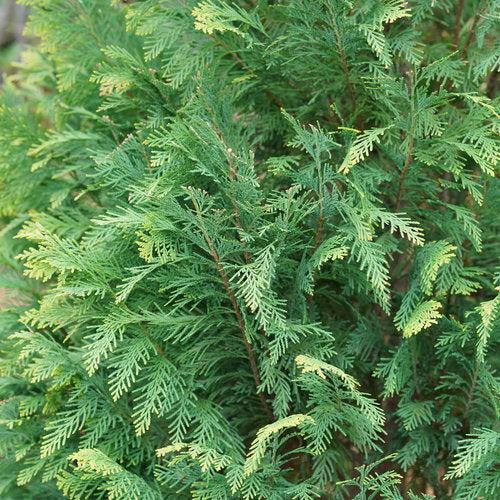 Blue & Gold False Cypress is a large evergreen conifer shrub with a dense and narrow columnar habit. Its attractive feathery deep green splays of foliage emerges with golden tips that give a soft glow to the foliage at a distance. Prefers full sun and moist well-drained soil.