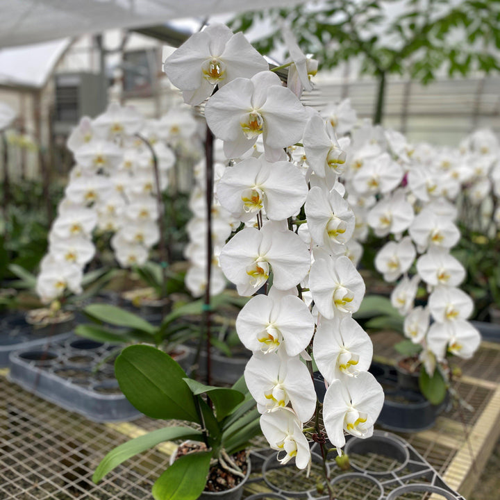 PHALAENOPSIS CARE AND REBLOOM GUIDE: Place in a moderate to bright window. Water once a week with room temperature water, not ice cubes. Once blooms wither and fall off, repot your orchid using an orchid mix planting medium. Continue watering schedule and implement a routine orchid fertilization method, and your orchid will rebloom!