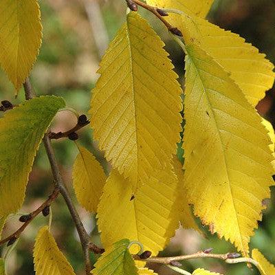 Japanese Elm is a hardy deciduous tree with a broad spreading crown resembling an umbrella and branches that can develop corky wings as it matures.  The rough dark green leaves with double-serrated margins turn yellow in fall.  Inconspicuous red-green flowers bloom in early spring before the foliage emerges and give way to samaras.   Grows best with full sun and rich well-drained soils.  Japanese Elm is highly resistance to Dutch Elm disease.  Can tolerate both dry and wet sites